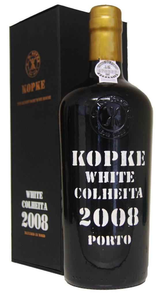 A 2003 vintage Port Wine. The 2003 Kopke White port has a cool, light-amber color. This unique white colheita derives from the traditional white grapes of the Porto e Douro region. Starting with aromas of a Pear Clafouti and burnt sugar, this elegant port delivers luscious flavors of Japanese pear-apple, with accents of hazelnut, nutmeg and orange zest. The lingering grapefruit finish provides the perfect balance for the sweetness.