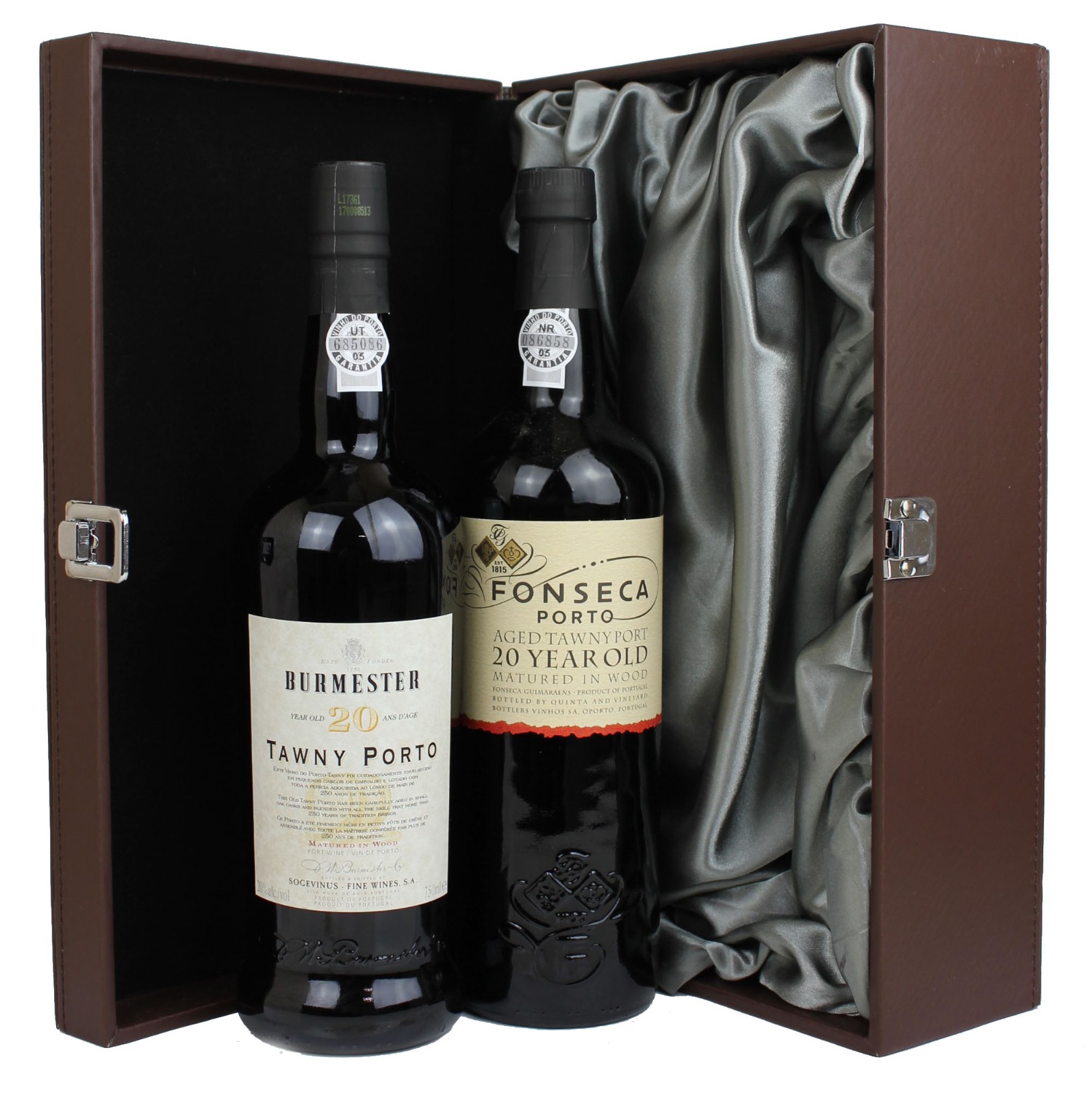 Fonseca & Burmester 20 Year Old Tawny Ports (2x75cl), both ports come in a double leather effect gift box with silk liner.