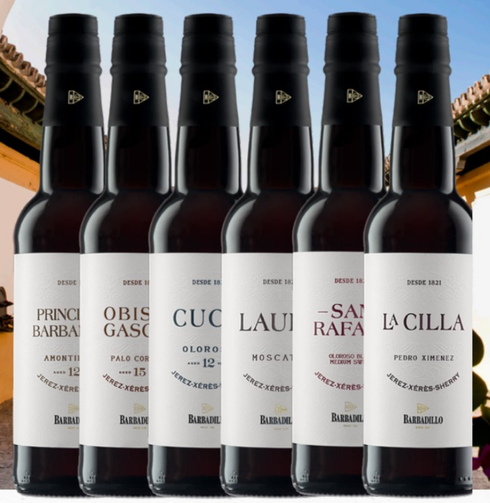Barbadillo’s Premium Sherry Collection, which includes six distinct oxidized styles. Each style is crafted to reflect traditional Andalusian character and the finesse of extended aging under oxidative conditions.