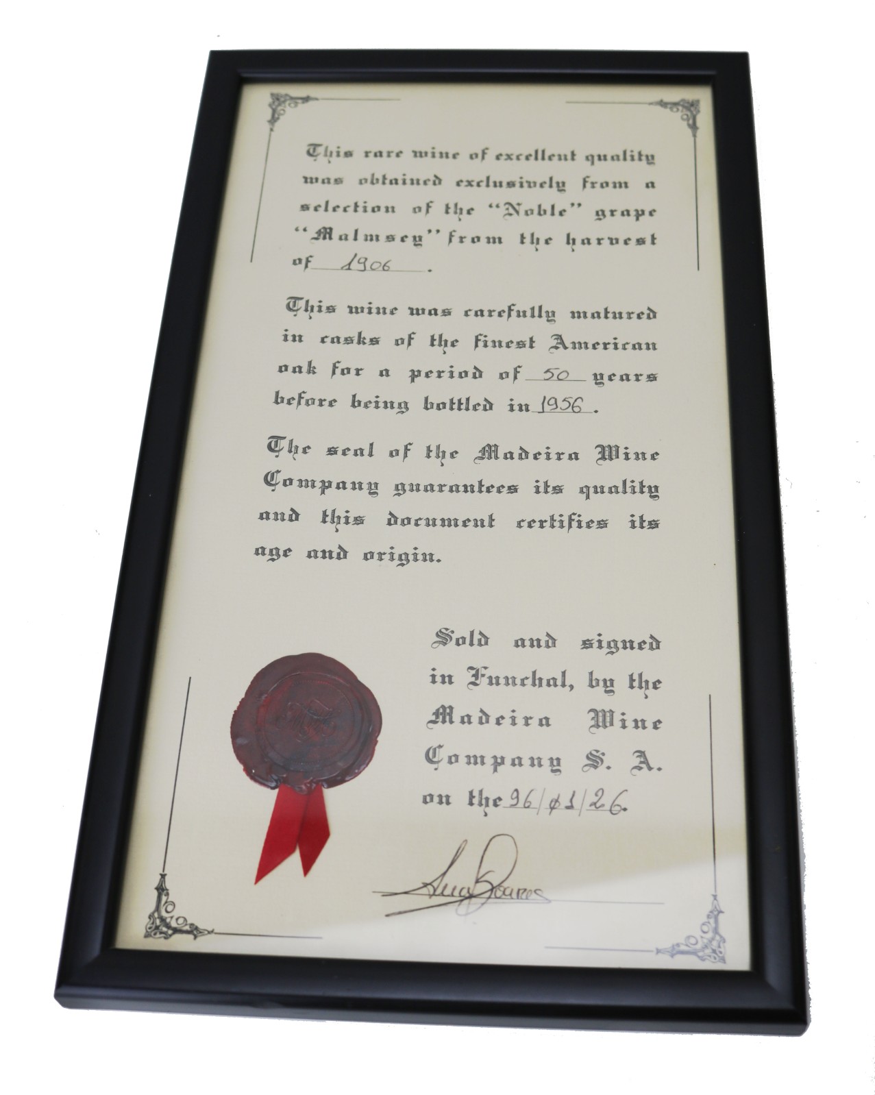 Barbeito, 1906 Madeira Wine Malvasia Includes certificate from the Madeira Wine Co. Bottle size: 75cl ABV: 20% Price: £995.00 Out of stock Description Condition Description Condition Excellent Upgrade this item with a Luxury Gift Package Gold Cardboard Presentation Box - £4.45 Single bottle cardboard presentation box. Includes tasting notes and a personal message (can be input in the Personal Gift Message Box at the basket stage).***Please note this product is manufactured to fit a 75cl bottle (50cl and 37.5cl bottles can also be packaged inside this box). Out of Stock Single Bottle Black Wooden Box with Sliding Lid - £7.95 Sliding lid wooden gift box with straw lining. Includes tasting notes and a personal message (can be input in the Personal Gift Message Box at the basket stage).***Please note this product is manufactured to fit a 75cl bottle (50cl and 37.5cl bottles can also be packaged inside this box). Out of Stock Single Bottle Dark Mocha Leather Effect Gift Box with Silk Liner - £11.95 Send your wine in a beautiful silk-lined, Dark Mocha Leather Effect gift box. Includes tasting notes and a personal message (can be input in the Personal Gift Message Box at the basket stage).***Please note this product is manufactured to fit a 75cl bottle (50cl and 37.5cl bottles can also be packaged inside this box). Out of Stock Deluxe Gift box with Accessories - £14.95 Send your wine in a beautiful silk-lined gift Box with an accessories set inlaid into the lid. Includes: Corkscrew; Wine Pourer; Thermometer and Wine Stopper. Includes tasting notes and a personal message (can be input in the Personal Gift Message Box at the basket stage).***Please note this product is manufactured to fit a 75cl bottle (50cl and 37.5cl bottles can also be packaged inside this box). Out of Stock Two Bottle Dark Mocha Leather Effect Gift Box with Silk Liner - £15.95 Create a unique gift package with our luxury Dark Mocha Leather Effect presentation box with silk liners.Select this option for your first wine and then standard packaging for the remaining wine. Includes tasting notes and a personal message (can be input in the Personal Gift Message Box at the basket stage).***Please note this product is manufactured to fit two 75cl bottles (50cl and 37.5cl bottles can also be packaged inside this box). Out of Stock You might also be interested in: View Last one Barbeito, 1915 Malvasia The *1915 Barbeito Malvasia* is a century-old masterpiece from one of Madeira’s most respected producers, … £895.00 View Last one Madeira, 1906 Malvasia, Madeira The *1906 Malvasia Madeira* is an extraordinary example of one of the island’s most opulent and age-worthy wine styles, … £980.00 View Last one Barbeito, 1920 Sercial The *1920 Barbeito Sercial* is a magnificent example of Madeira’s legendary ageing potential and one … £795.00 View Last Few Madeira, 1906 Leacock's - Malvasia, Madeira John Leacock sailed to Madeira from the United Kingdom (after the death of his father) in 1741 and at … £1,295.00