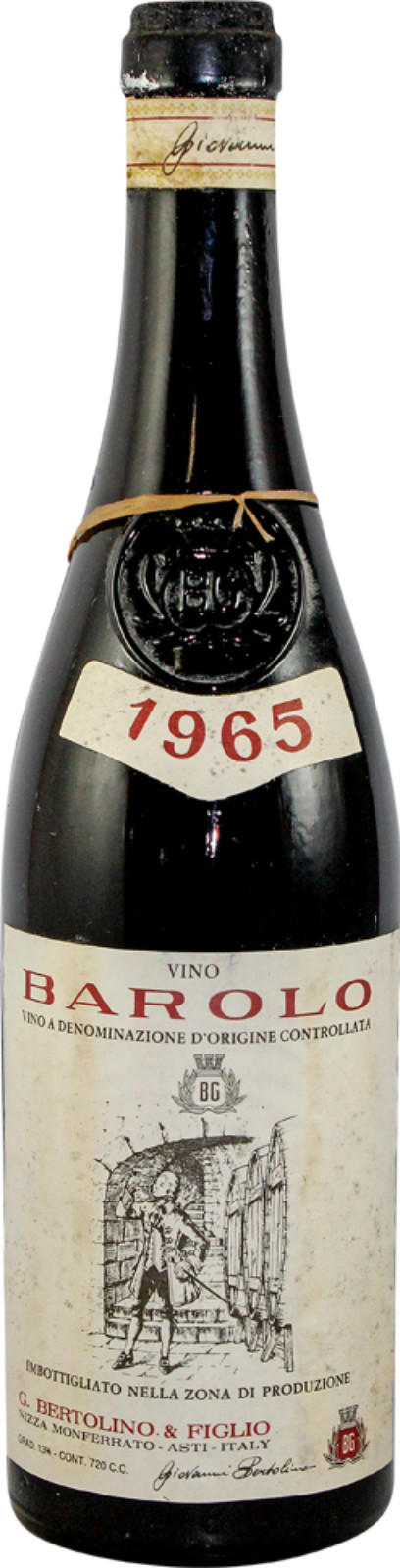 The 1965 Barolo from Bertolino is a fascinating relic from a classic era of Piedmont winemaking, showcasing the old-world charm of traditional Nebbiolo. Bertolino, a lesser-known but regionally respected producer at the time, crafted wines in the customary fashion—extended skin contact, aging in large neutral oak, and a focus on structure and longevity rather than fruit-forward immediacy.