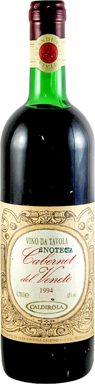 A classic red Italian wine made from the Cabernet Sauvignon grape of the 1994 vintage. The wine has aged to produce a garnet core with a clear rim. Lots of oak, leather and soft tannins remain.