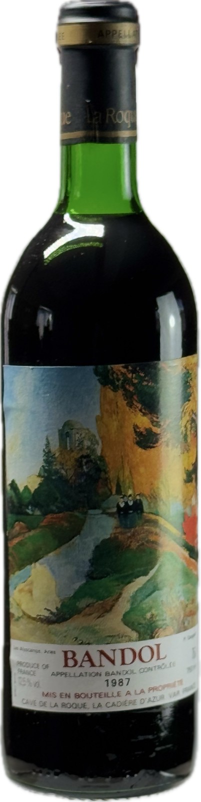 The 1987 Bandol Rouge from Caves de la Roque is a red wine from the Provence region of France, specifically the Bandol appellation. Bandol wines are renowned for their robust and age-worthy reds, primarily crafted from the Mourvèdre grape, often blended with Grenache and Cinsault.