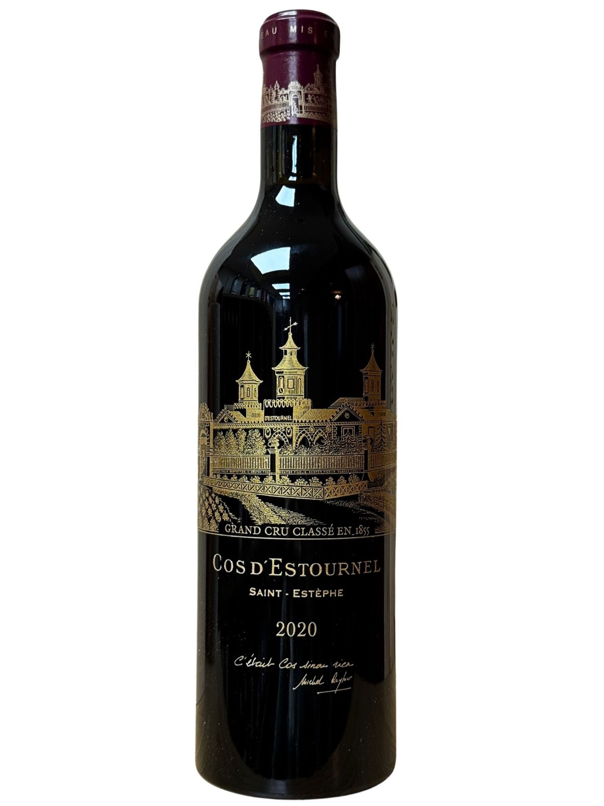 Château Cos d'Estournel is a prestigious wine estate located in the Saint-Estèphe appellation of Bordeaux, France. Established in the early 19th century by Louis-Gaspard d'Estournel, the estate is renowned for its grand architectural style, including the iconic pagodas that distinguish its winery. Covering approximately 100 hectares, the vineyard benefits from a unique terroir of gravel and clay soils, ideal for cultivating Cabernet Sauvignon, Merlot, Cabernet Franc, and Petit Verdot. Château Cos d'Estournel consistently produces exceptional Second Growth (Deuxième Cru) wines, as classified in the 1855 Bordeaux Classification, known for their power, elegance, and remarkable aging potential. The wines are celebrated for their rich, layered flavors of dark fruit, spices, and subtle earthy notes, making Château Cos d'Estournel a benchmark for quality and sophistication in Bordeaux winemaking.