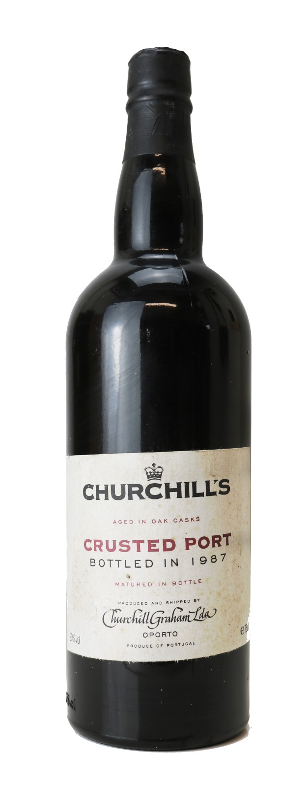 Churchill's Port, 1987 Crusted Port Crusted Port Bottle size: 75cl ABV: 20% Price: £99.00 Out of stock Description Condition Description Condition Good Upgrade this item with a Luxury Gift Package Gold Cardboard Presentation Box - £4.45 Single bottle cardboard presentation box. Includes tasting notes and a personal message (can be input in the Personal Gift Message Box at the basket stage).***Please note this product is manufactured to fit a 75cl bottle (50cl and 37.5cl bottles can also be packaged inside this box). Out of Stock Single Bottle Black Wooden Box with Sliding Lid - £7.95 Sliding lid wooden gift box with straw lining. Includes tasting notes and a personal message (can be input in the Personal Gift Message Box at the basket stage).***Please note this product is manufactured to fit a 75cl bottle (50cl and 37.5cl bottles can also be packaged inside this box). Out of Stock Single Bottle Dark Mocha Leather Effect Gift Box with Silk Liner - £11.95 Send your wine in a beautiful silk-lined, Dark Mocha Leather Effect gift box. Includes tasting notes and a personal message (can be input in the Personal Gift Message Box at the basket stage).***Please note this product is manufactured to fit a 75cl bottle (50cl and 37.5cl bottles can also be packaged inside this box). Out of Stock Deluxe Gift box with Accessories - £14.95 Send your wine in a beautiful silk-lined gift Box with an accessories set inlaid into the lid. Includes: Corkscrew; Wine Pourer; Thermometer and Wine Stopper. Includes tasting notes and a personal message (can be input in the Personal Gift Message Box at the basket stage).***Please note this product is manufactured to fit a 75cl bottle (50cl and 37.5cl bottles can also be packaged inside this box). Out of Stock Two Bottle Dark Mocha Leather Effect Gift Box with Silk Liner - £15.95 Create a unique gift package with our luxury Dark Mocha Leather Effect presentation box with silk liners.Select this option for your first wine and then standard packaging for the remaining wine. Includes tasting notes and a personal message (can be input in the Personal Gift Message Box at the basket stage).***Please note this product is manufactured to fit two 75cl bottles (50cl and 37.5cl bottles can also be packaged inside this box). Out of Stock