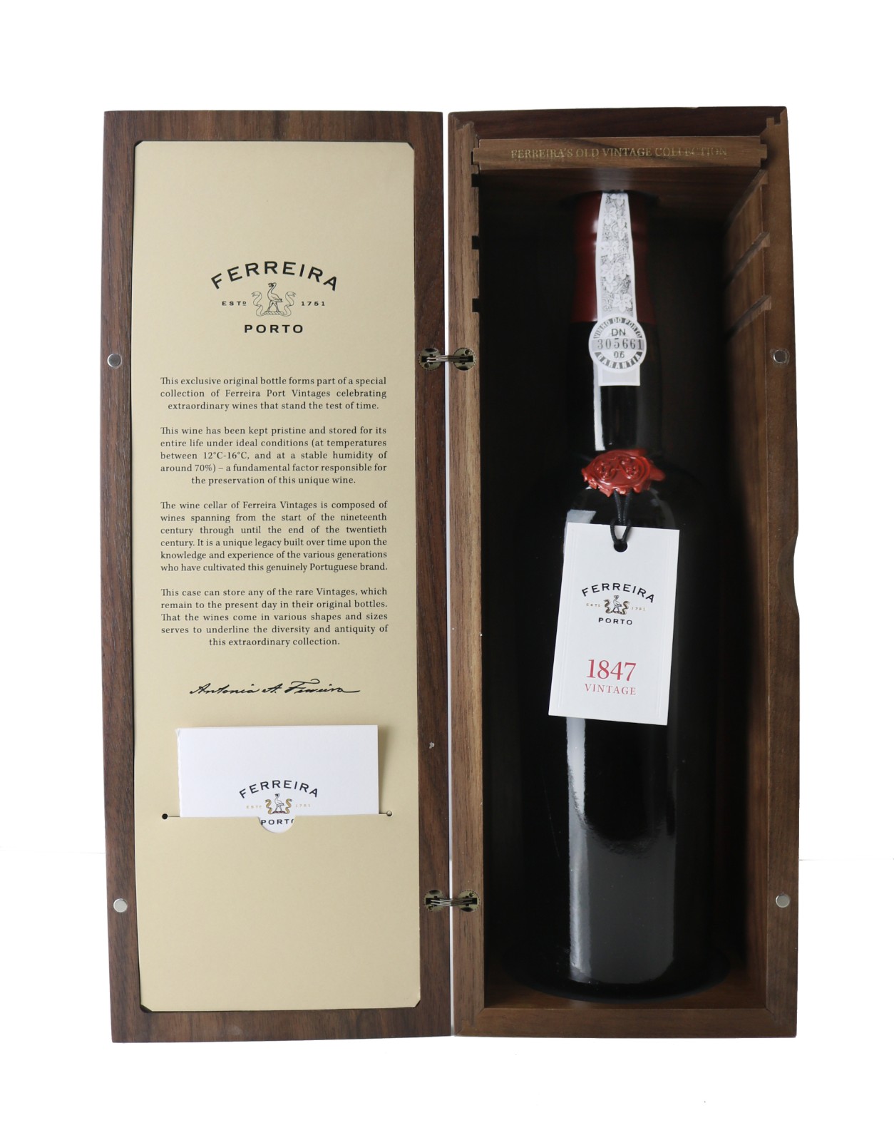 Bottle released from Ferreira cellars in perfect condition with new wax seal, label and authenticity certificate.