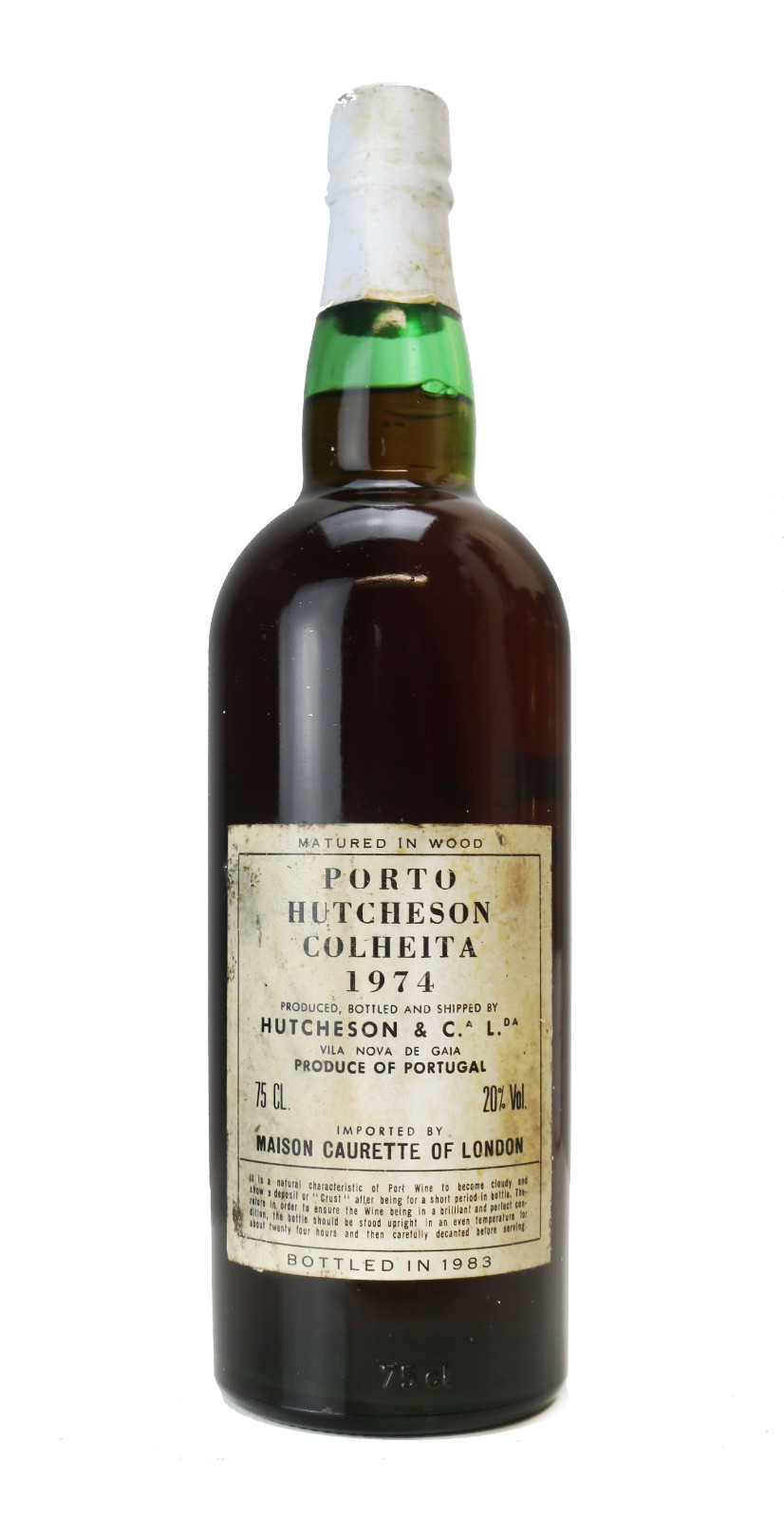 Hutcheson Port, 1974 Tawny Port Tawny Port Bottle size: 75cl ABV: 20% Price: £119.00 Out of stock Description Condition Description Condition Label binsoiled - good level Upgrade this item with a Luxury Gift Package Gold Cardboard Presentation Box - £4.45 Single bottle cardboard presentation box. Includes tasting notes and a personal message (can be input in the Personal Gift Message Box at the basket stage).***Please note this product is manufactured to fit a 75cl bottle (50cl and 37.5cl bottles can also be packaged inside this box). Out of Stock Single Bottle Black Wooden Box with Sliding Lid - £7.95 Sliding lid wooden gift box with straw lining. Includes tasting notes and a personal message (can be input in the Personal Gift Message Box at the basket stage).***Please note this product is manufactured to fit a 75cl bottle (50cl and 37.5cl bottles can also be packaged inside this box). Out of Stock Single Bottle Dark Mocha Leather Effect Gift Box with Silk Liner - £11.95 Send your wine in a beautiful silk-lined, Dark Mocha Leather Effect gift box. Includes tasting notes and a personal message (can be input in the Personal Gift Message Box at the basket stage).***Please note this product is manufactured to fit a 75cl bottle (50cl and 37.5cl bottles can also be packaged inside this box). Out of Stock Deluxe Gift box with Accessories - £14.95 Send your wine in a beautiful silk-lined gift Box with an accessories set inlaid into the lid. Includes: Corkscrew; Wine Pourer; Thermometer and Wine Stopper. Includes tasting notes and a personal message (can be input in the Personal Gift Message Box at the basket stage).***Please note this product is manufactured to fit a 75cl bottle (50cl and 37.5cl bottles can also be packaged inside this box). Out of Stock Two Bottle Dark Mocha Leather Effect Gift Box with Silk Liner - £15.95 Create a unique gift package with our luxury Dark Mocha Leather Effect presentation box with silk liners.Select this option for your first wine and then standard packaging for the remaining wine. Includes tasting notes and a personal message (can be input in the Personal Gift Message Box at the basket stage).***Please note this product is manufactured to fit two 75cl bottles (50cl and 37.5cl bottles can also be packaged inside this box). Out of Stock Three Bottle Wooden Wine Gift Box - £16.95 Select this option for your first wine and then standard packaging for the remaining two bottles.Includes tasting notes and a personal message (can be input in the Personal Gift Message Box at the basket stage).***Please note this product is manufactured to fit three75cl bottles (50cl and 37.5cl bottles can also be packaged inside this box). Out of Stock