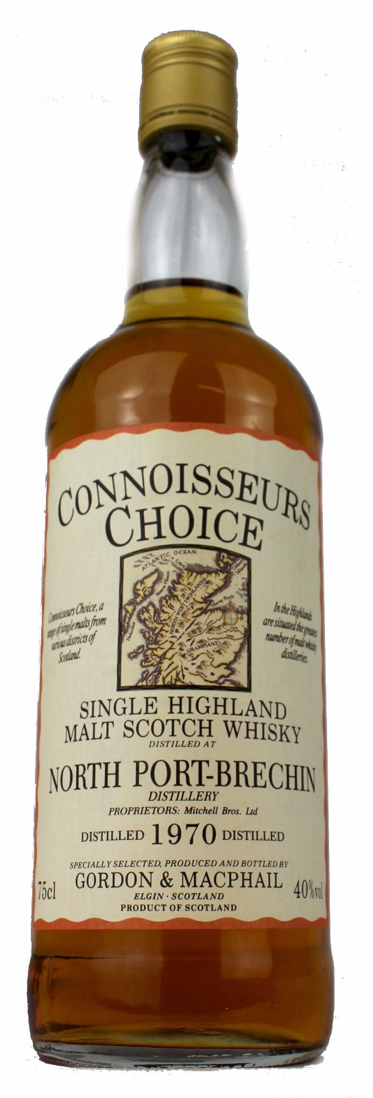 A 1970 vintage distilled at North Port distillery(also known as Brechin) and bottled by Gordon & Macphail as part of their Connoisseurs Choice range. Almost all of the distillery's production went into blends, with the first official bottlings not appearing until the mid-1990s, a decade after the distillery had closed.