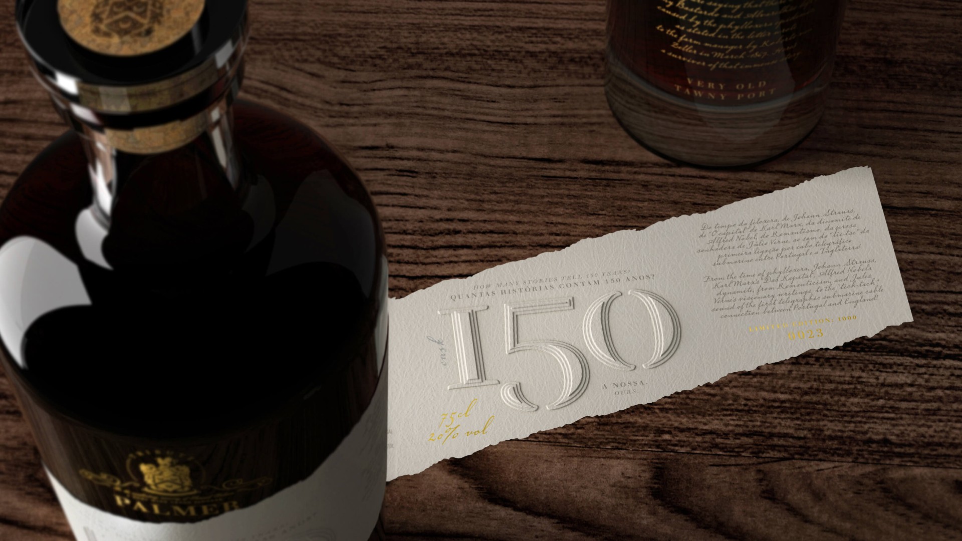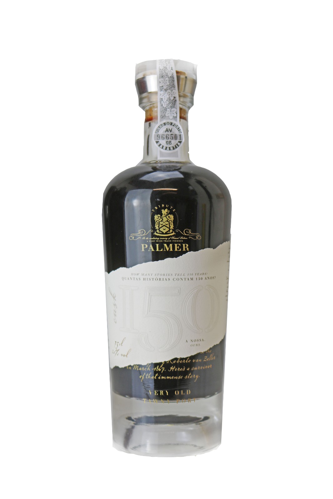 Palmer Cask 150 is the survivor of a time of change, invention and plagues. His real story is printed in gold on the glass of the bottle, in direct contact with the wine. While its label tells the story known by all, the one of its time, it also conceals part of that memory. Only the lucky ones, the owners of one of the 1000 unique bottles, will be able to discover the true history of this port wine.