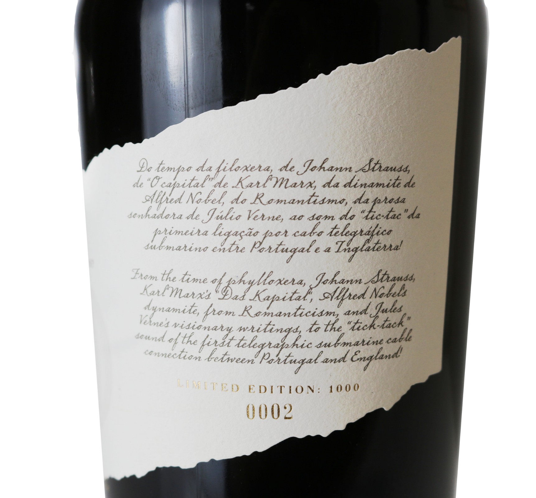 This tribute to 150 years is presented in a bottle of seductive and stylized silhouette thanks to the double height of its base. The transparency of the stopper allows you to appreciate its heart of cork, a noble material rooted for centuries in the Portuguese manufacturing tradition and wine culture.