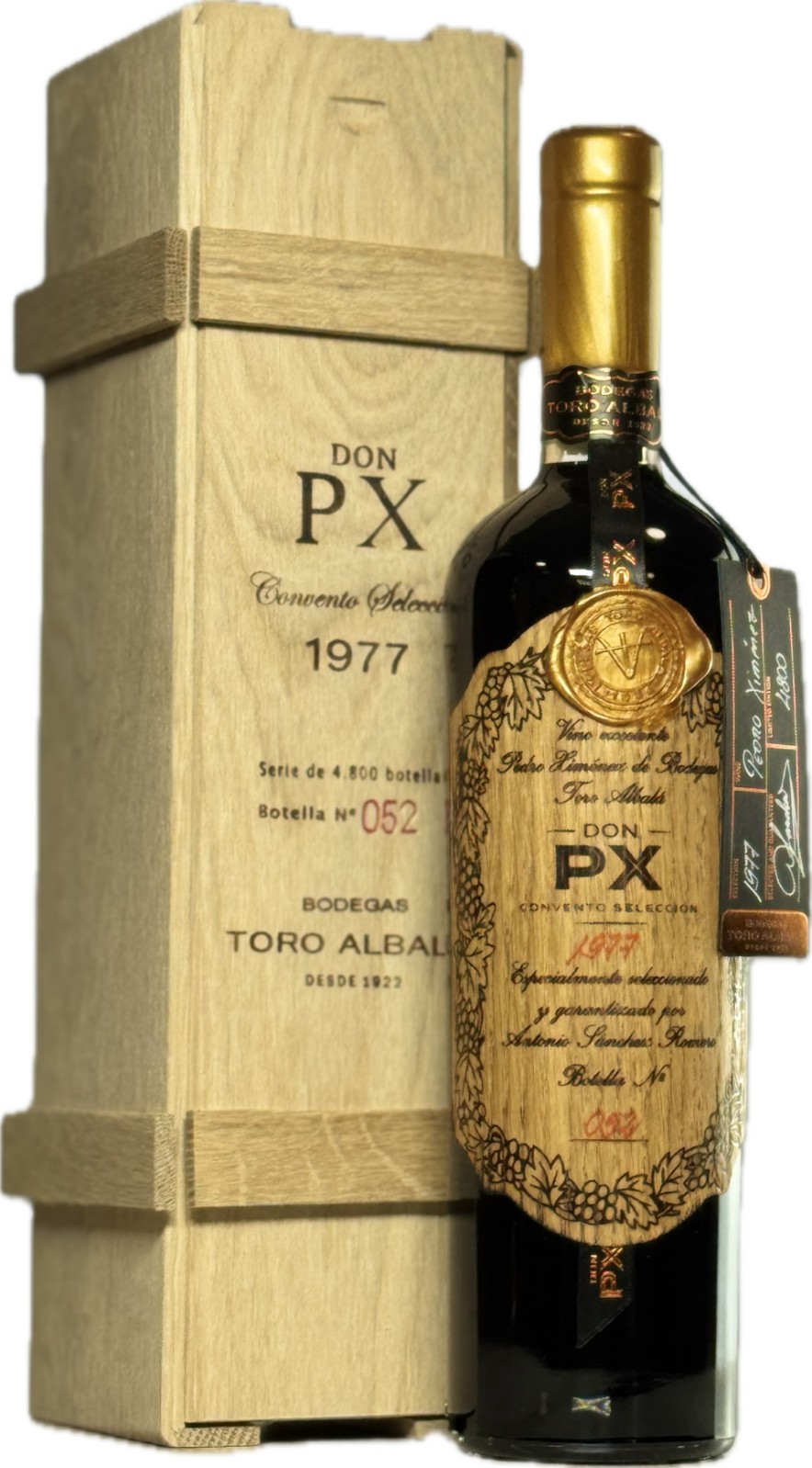 The 1977 Don PX Convento Selección is a celebrated vintage release in Toro Albalá’s elite Convento Selección series. Made from Pedro Ximénez grapes sun‑dried and aged through an oxidative regime in seasoned American oak, this 1977 edition remains a benchmark for maturity in Montilla‑Moriles PX. Critics have awarded it 96 points, placing it among the finest wines of Andalucia and reflecting its remarkable balance of heritage and intensity