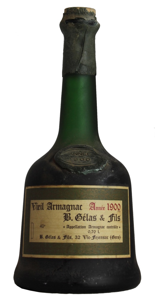 Rare old Armagnac, 1900 vintage, probably bottled in the mid 1990s. Baptiste Gélas founded his house in Bas Armagnac in 1865 after buying his father William's cooperage business. The Gélas family is descended from famous musketeer D'Artagnan.