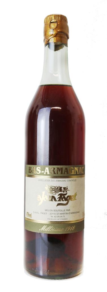 The *1918 Alain Faget Bas Armagnac* is a remarkable spirit from the heart of Gascony, distilled over a century ago at the very end of the First World War. Crafted from the finest local grapes and distilled in traditional copper alembics, this Bas Armagnac has spent decades maturing slowly in oak casks, developing a depth, elegance, and complexity that only such extended ageing can achieve. Bottles from this era are exceedingly rare, making this an extraordinary find for collectors of historic spirits.